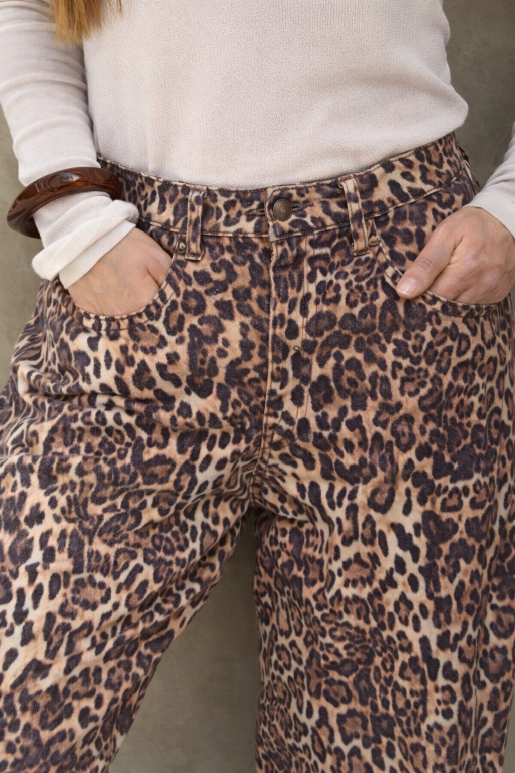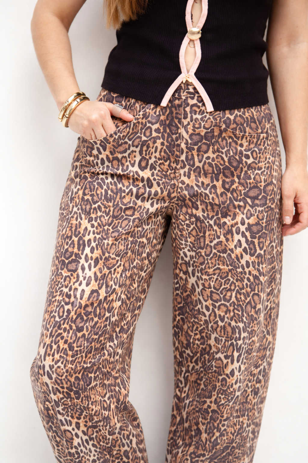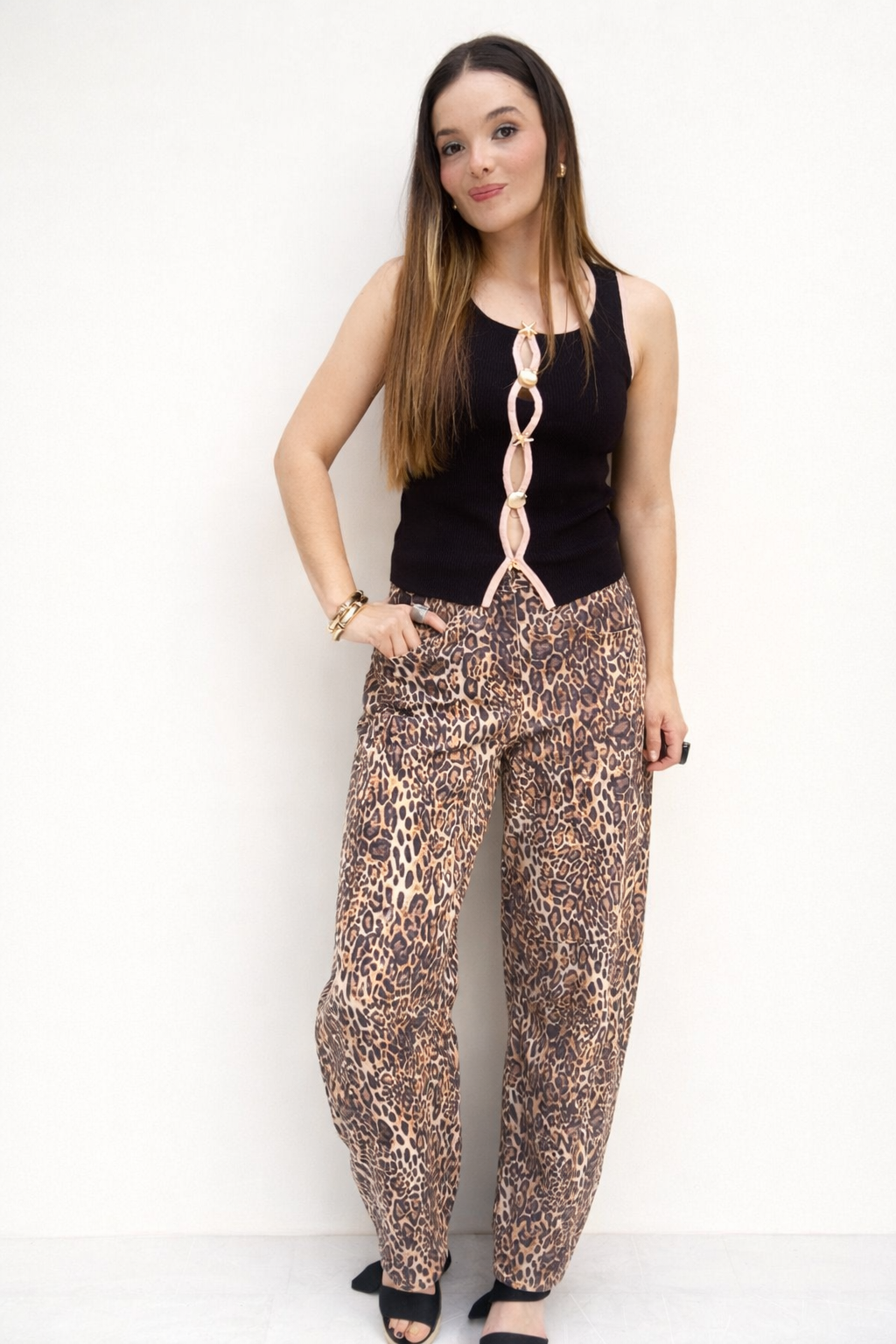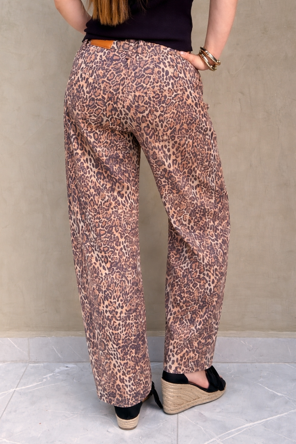 Confeccionado en denim estampado animal print, este jean combina comodidad y tendencia en una sola pieza. Su corte recto y tiro medio/alto estiliza la figura, alarga visualmente las piernas y ofrece un fit relajado pero favorecedor, ideal para usar todo el día.